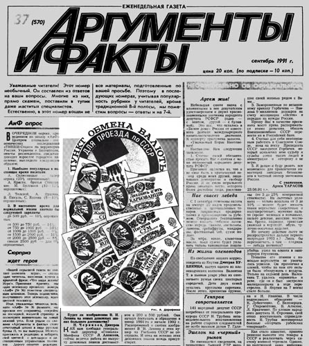 Пункт обмена валюты для проезда по СССР. № 37, 1991